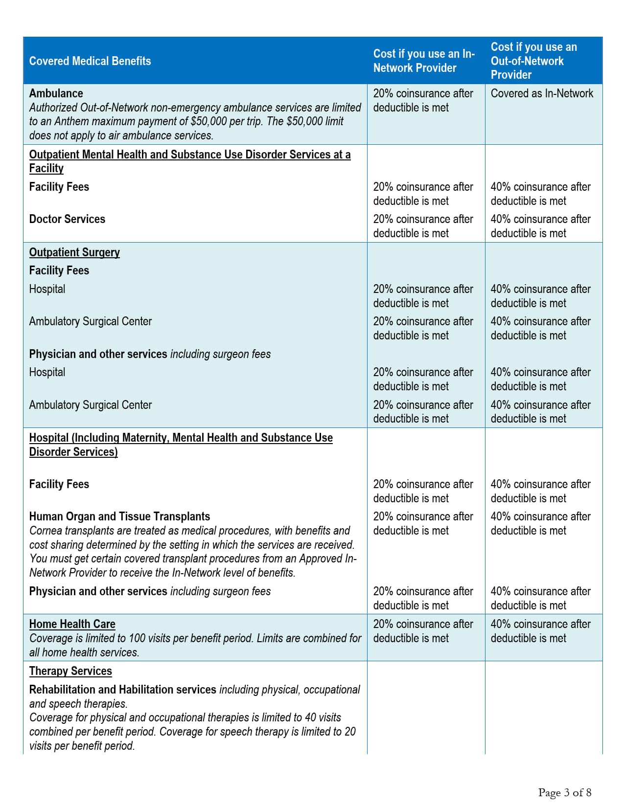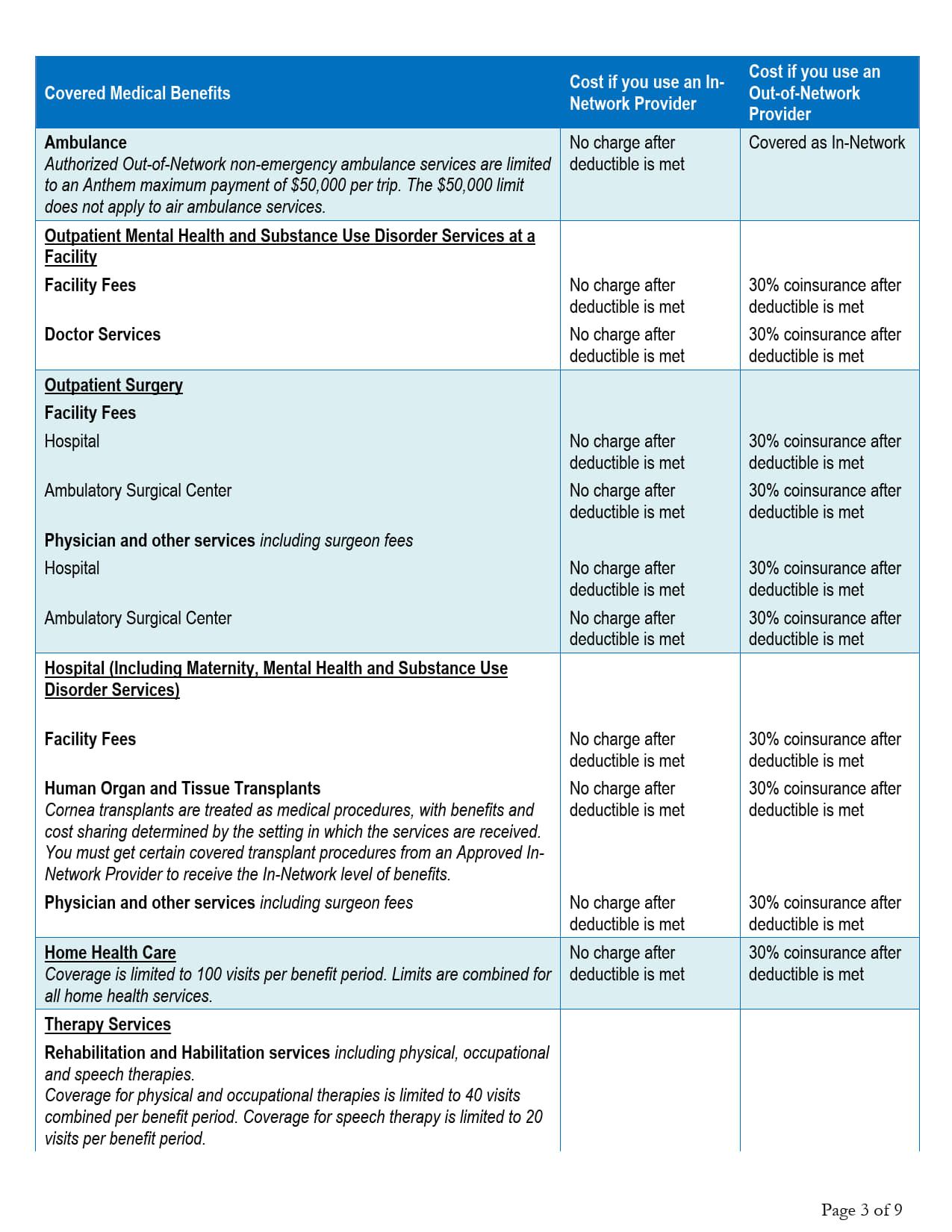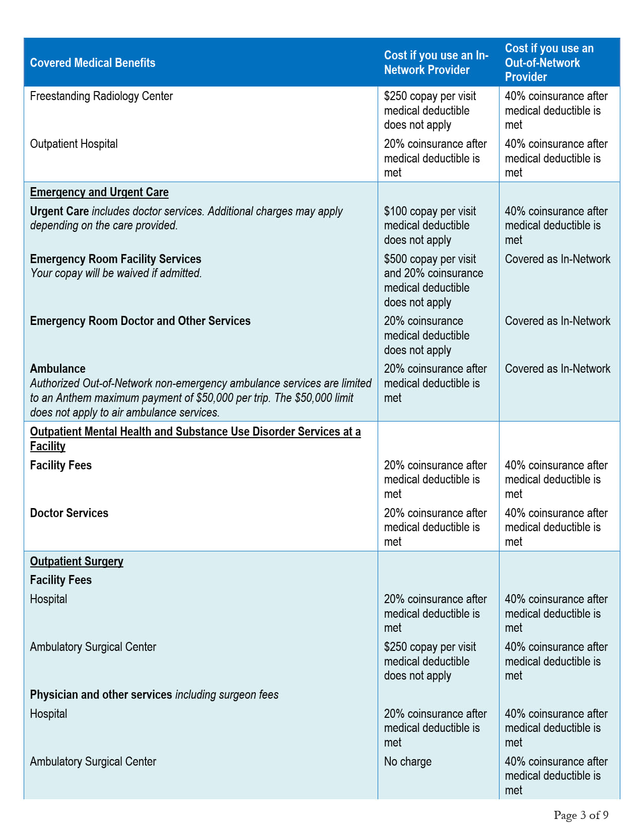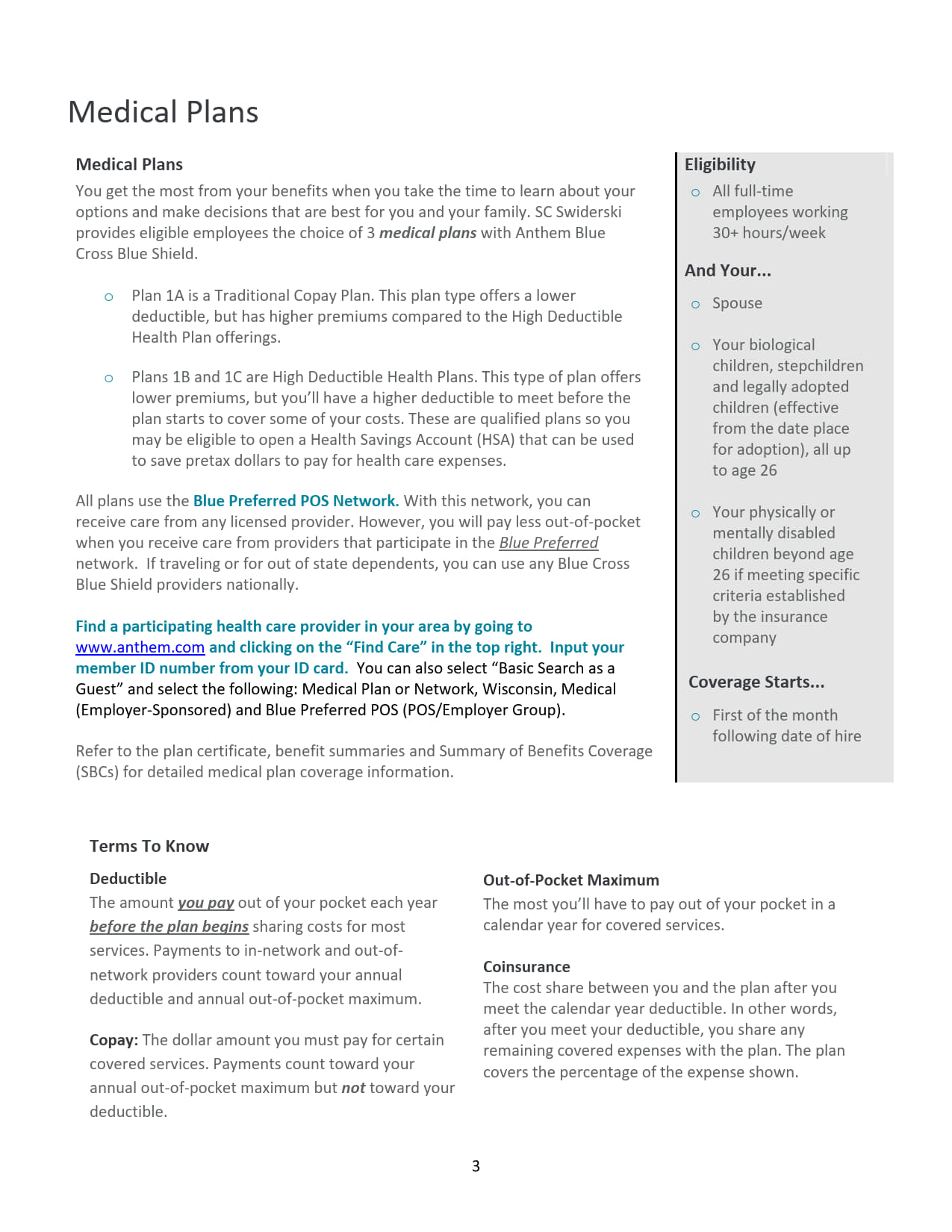 (Option 1A) Anthem Blue Preferred Plus Copay Plan $3,000/$6,000 Deductible FSA Qualified Plan