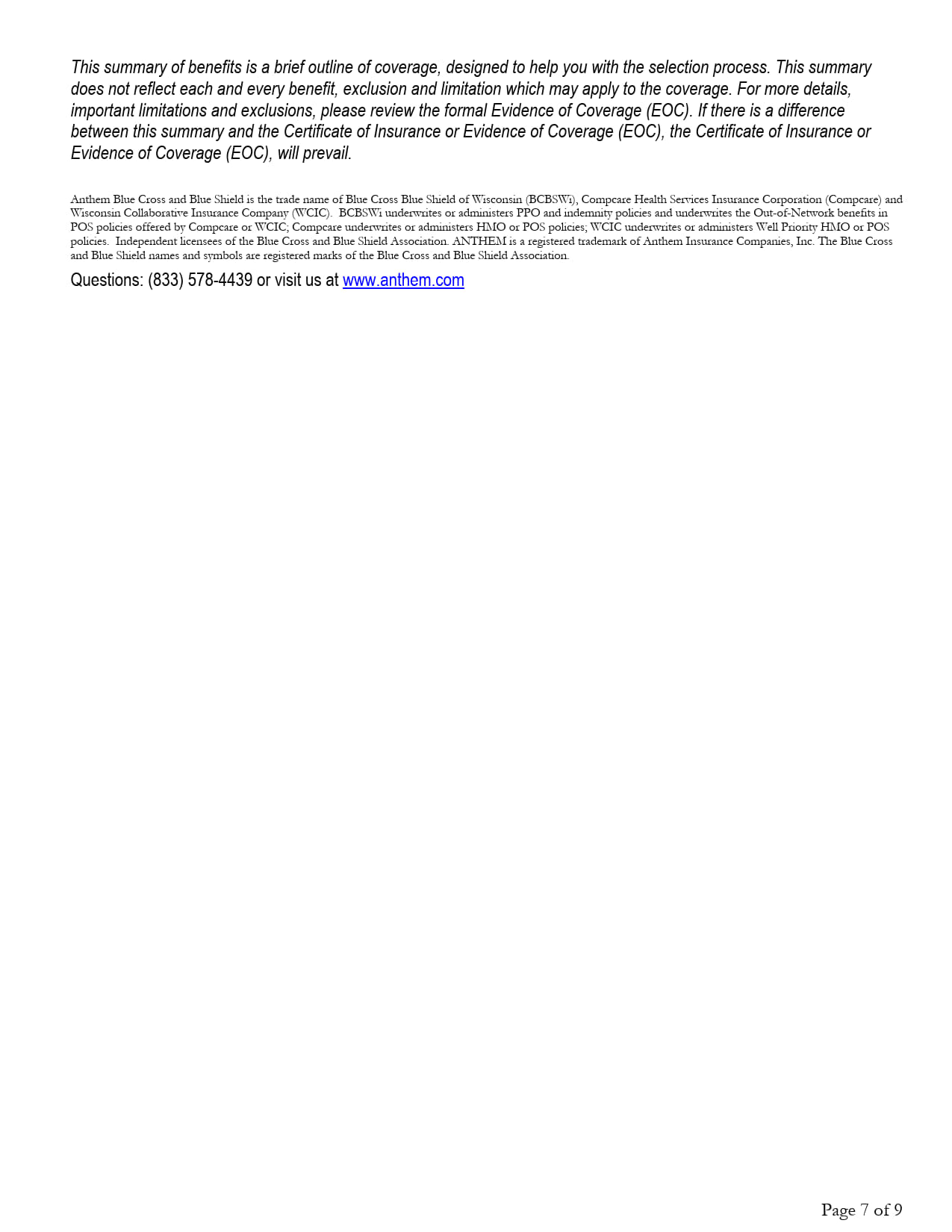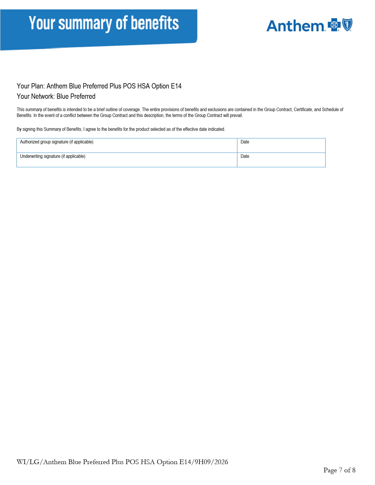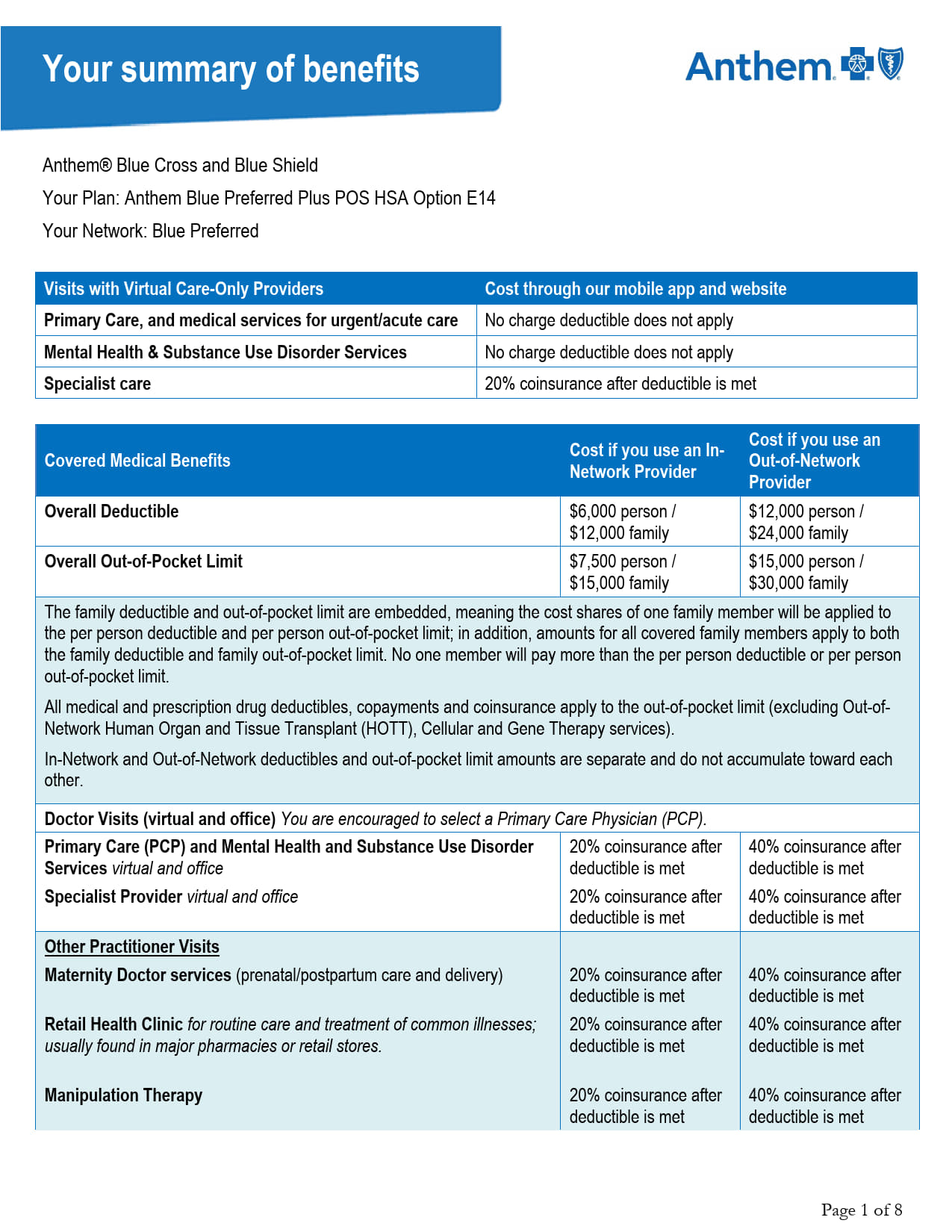 (Option 1C) Anthem Blue Preferred Plus $6,000/$12,000 HSA Qualified Plan
